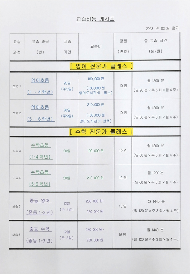교육비 안내