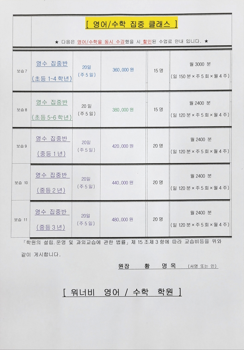 워너비 영수 학원